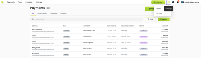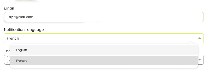 When creating a new contact or editing an existing contact you may choose the language will display in their payment links and notification emails.
